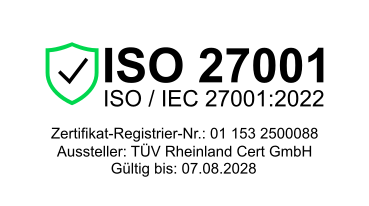 Durch die Zertifizierung nach ISO 27001 zeigen wir unser Engagement für den Schutz sensibler Informationen und die Gewährleistung der Vertraulichkeit, Integrität und Verfügbarkeit von Daten.